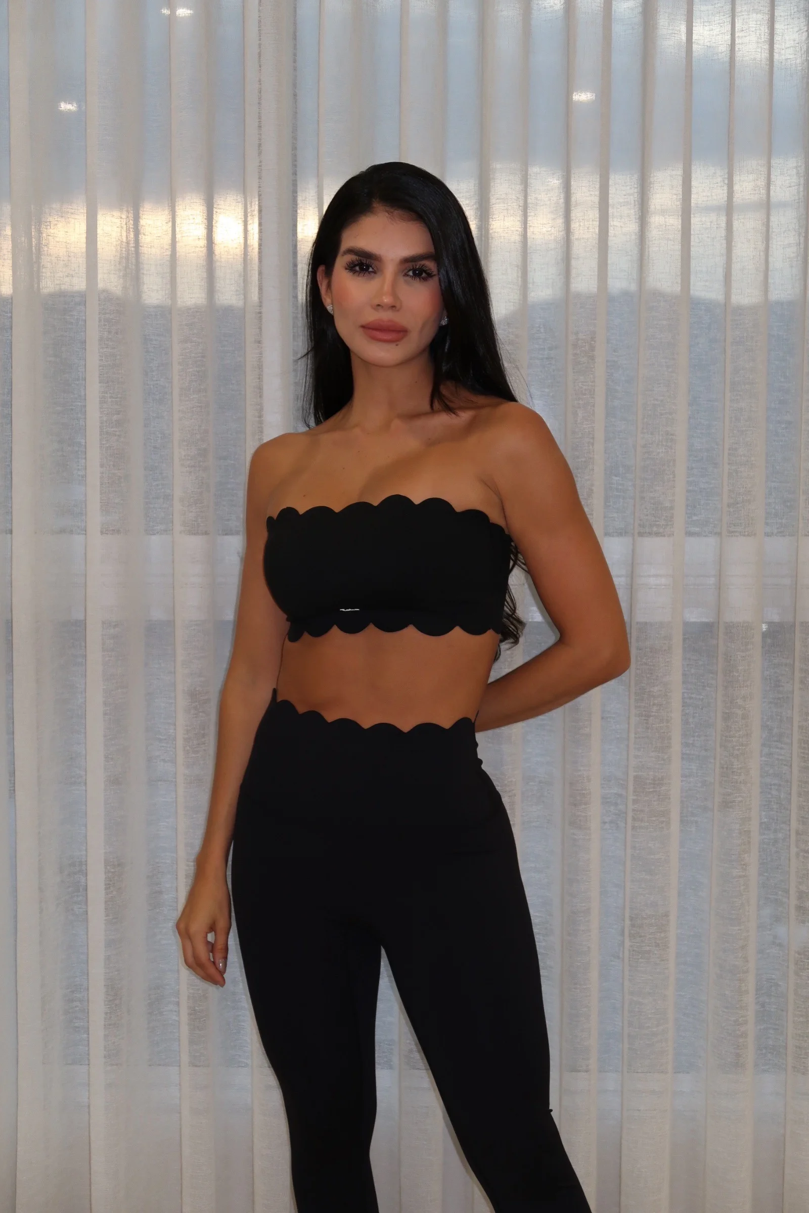 Este set está creado para moverse contigo sin perder la forma. Su top straple ofrece un excelente agarre gracias a su estructura firme y elástica, brindándote seguridad y libertad en cada entrenamiento.